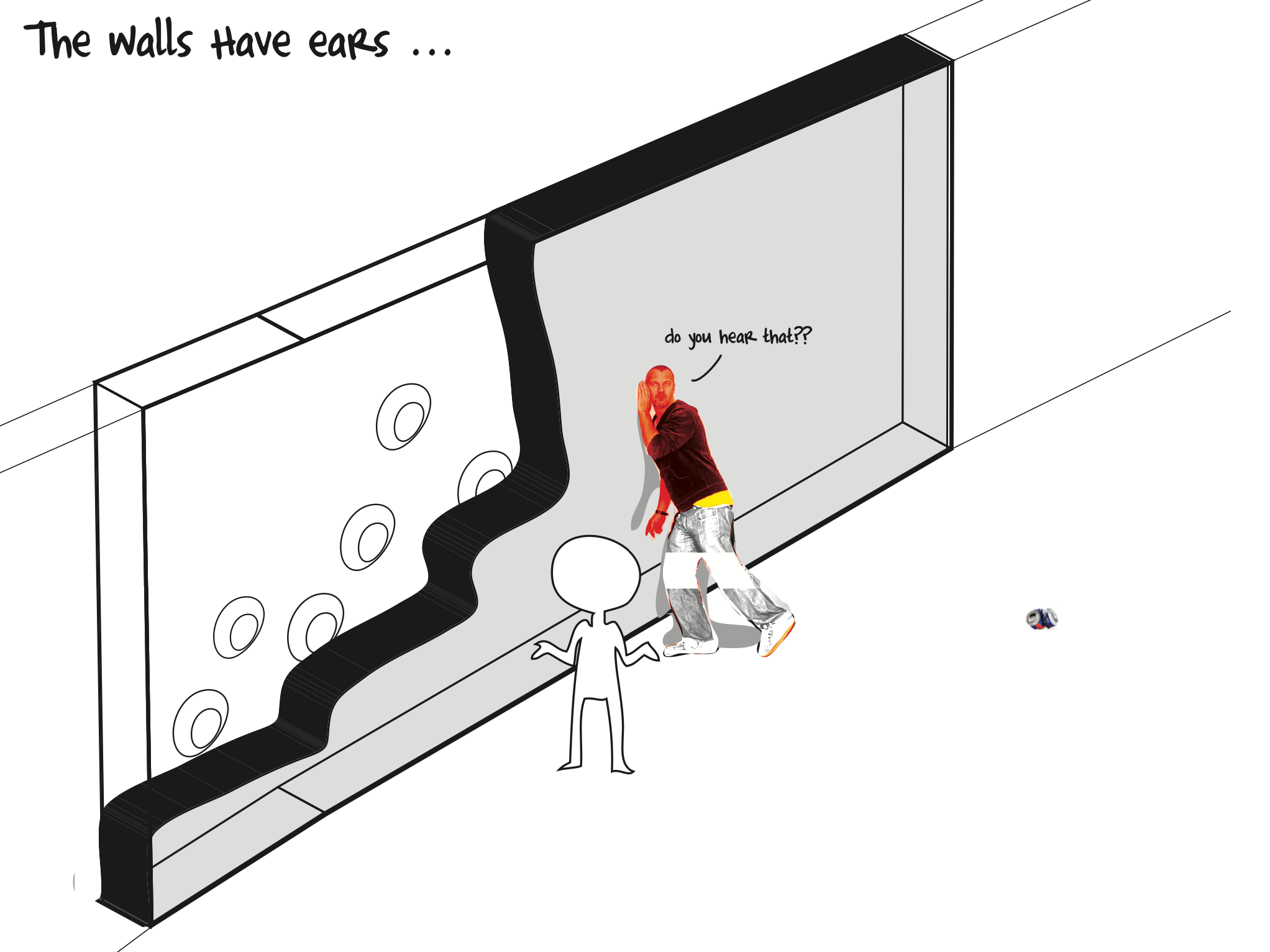 Sketch for Khalid Albaih’s site-specific installation “The Walls Have Ears” in Kassel